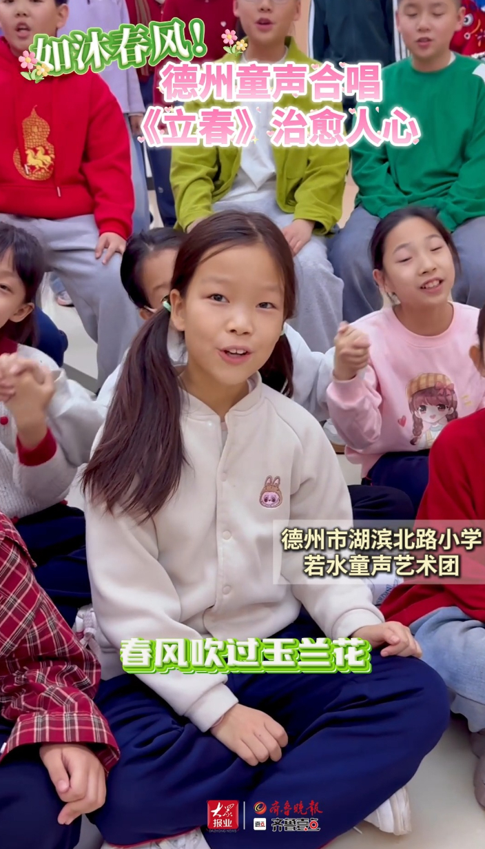 果然视频∣如沐春风!德州童声合唱《立春》治愈人心齐鲁晚报·齐鲁壹点客户端 03-12原创近日,德州市湖滨北路小学若水童声艺术团唱响歌曲《立春》,清澈稚嫩的童声如春风拂面,温暖治愈。孩子们用纯净歌声迎接春光,展现出朝气蓬勃、积极向上的精神风貌。(齐鲁晚报·齐鲁壹点 马雪平 通讯员 刘爽)