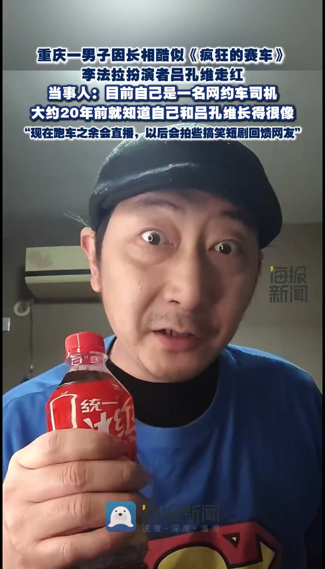 重庆一男子因长相酷似《疯狂的赛车》李法拉扮演者吕孔维走红