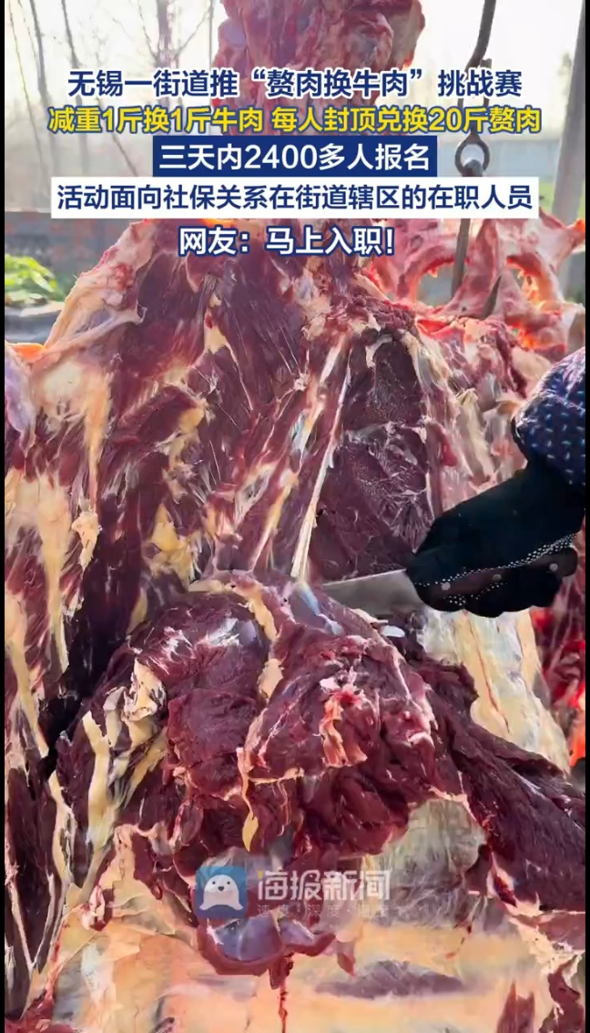 主播说丨无锡一街道推“赘肉换牛肉”挑战赛,减重1斤换1斤牛肉