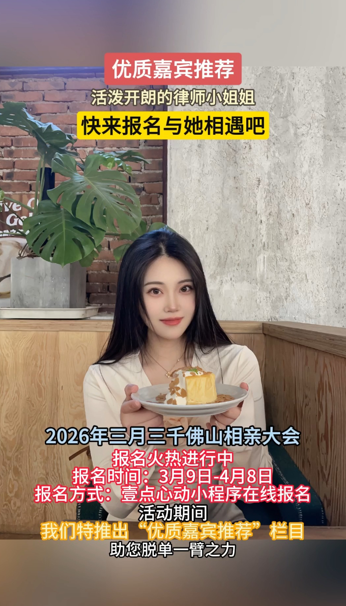 优质嘉宾推荐|年轻漂亮!25岁律师小姐姐千佛山相亲大会等你 昨天10:10 大众报业·齐鲁壹点 微信扫码扫码下载客户端(齐鲁晚报·齐鲁壹点 张雅楠 实习生 李彦 朱莉飞)3月12日,第20届三月三千佛山相亲大会报名火热进行中,报名截止至4月8日!活动举办时间为农历三月三期间,地点在济南千佛山风景区东门内广场。为了让您的缘分加速抵达,活动期间,我们特推出“壹点动心·优质嘉宾推荐”互动栏目,每天为您优中选优,助您脱单一臂之力!