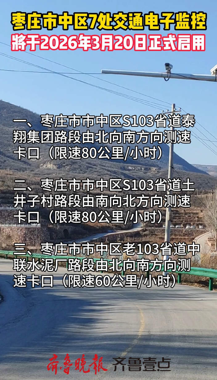 枣庄市中区7处交通电子监控,将于2026年3月20日正式启用