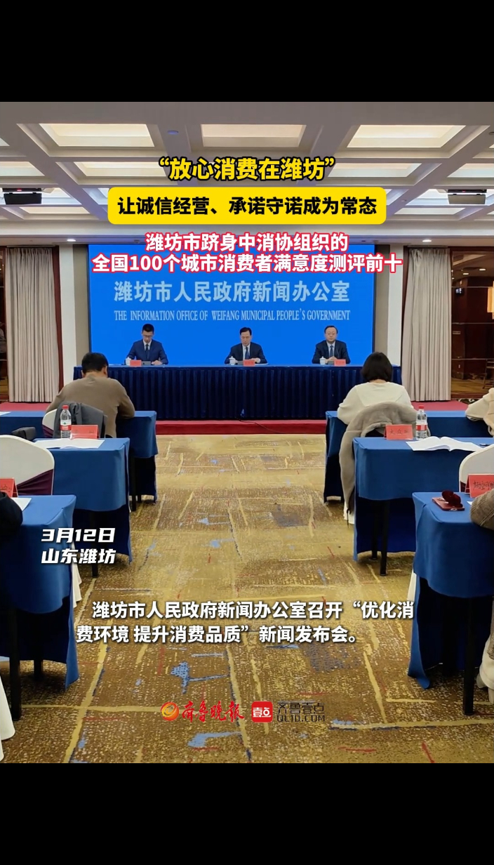 3月12日,潍坊市人民政府新闻办公室召开“优化消费环境 提升消费品质”新闻发布会。去年以来,潍坊市市场监管局会同相关部门认真贯彻落实上级部署要求,深入开展优化消费环境三年行动,以“放心消费在潍坊”建设为抓手,广泛动员经营主体参与,让诚信经营、承诺守诺成为常态。潍坊市跻身中消协组织的全国100个城市消费者满意度测评前十,“放心消费在潍坊”名片更加深入人心。