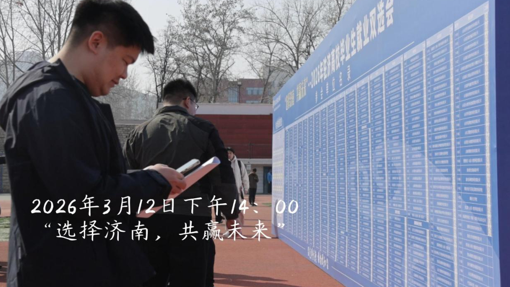 “选择济南,共赢未来”双选会:才聚山财大,筑梦在泉城大众报业·齐鲁壹点 昨天15:572026年3月12日,“选择济南,共赢未来”2026年驻济南高校毕业生就业双选会在山东财经大学(燕山校区)正式启动,本次活动组织参会企业用人单位350余家,参会大学生10000余人。