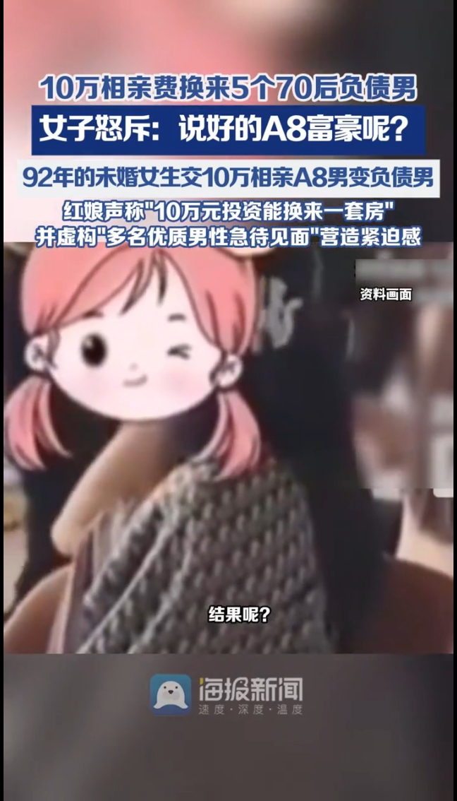 “10万块钱的投资,能换来一套房?一个亿的身家?” 这话听着像不像成功学洗脑?可它偏偏出自一家“高端婚介”的红娘之口!