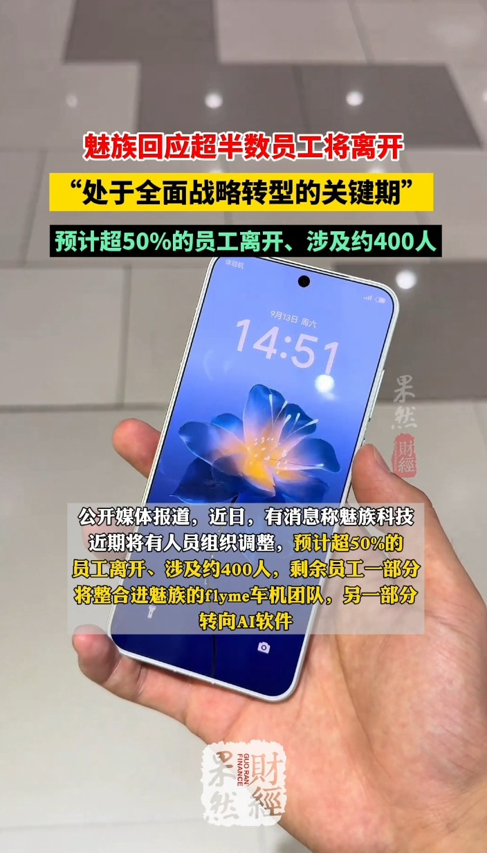 果然财经|魅族回应超半数员工将离开 10:09 原创齐鲁晚报·齐鲁壹点客户端 微信扫码扫码下载客户端公开媒体报道,近日,有消息称魅族科技近期将有人员组织调整,预计超50%的员工离开、涉及约400人,剩余员工一部分将整合进魅族的flyme车机团队,另一部分转向AI软件。3月13日,据科创板日报报道,魅族科技方面对此回应称:“魅族科技处于全面战略转型的关键期,从传统硬件驱动,升级为AI驱动的软件与服务创新。