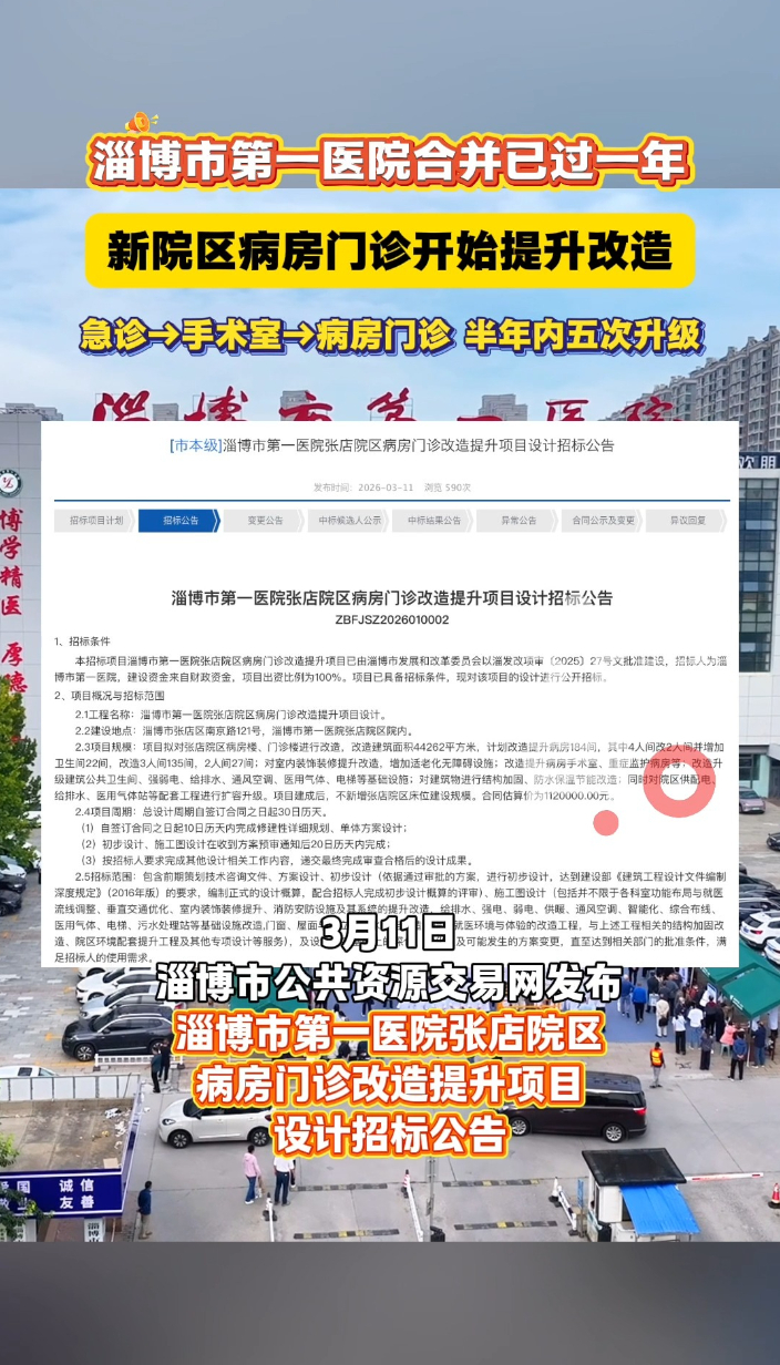 淄博市第一医院合并已过一年 ,新院区病房门诊开始提升改造。