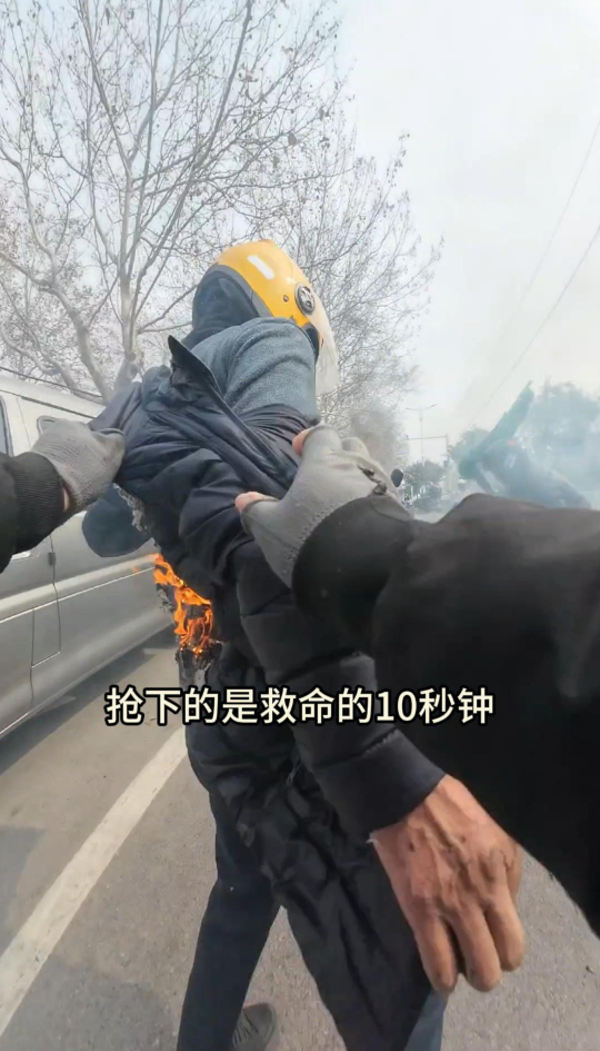 大众开麦丨淄博街头“火”车惊魂,幸亏遇见他!网友评价:好人必须一生平安!鲁中晨报 | 03-14 原创大众新闻·鲁中晨报 微信扫码扫码下载客户端3月13日上午,淄博周村街头,一名骑着车的外卖小哥后背着火却毫无察觉。途经此处的许先生看见后,边吼“着火了”边追上去,徒手帮着把着火的衣服一件件脱下来。最终,外卖小哥得救,许先生的手也受了伤,不过,他觉得这事做得值得!(大众新闻·鲁中晨报记者 伊巍 孙渤海)