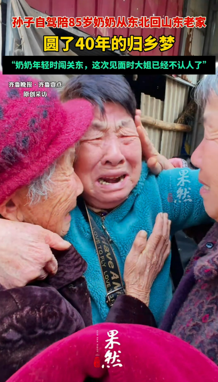 果然视频|孙子陪85岁奶奶从东北回山东老家,圆40年的归乡梦齐鲁壹点 | 03-14 原创齐鲁晚报·齐鲁壹点客户端 微信扫码扫码下载客户端3月9日,孙子周鸿德开车2000多公里,从黑龙江牡丹江到山东菏泽,只为圆奶奶谢秀荣40多年的归乡梦。12日,当他拍下奶奶和她姐姐重逢的一幕时,自己也哭了。(齐鲁晚报·齐鲁壹点记者 杜嘉文 胡玲玲)