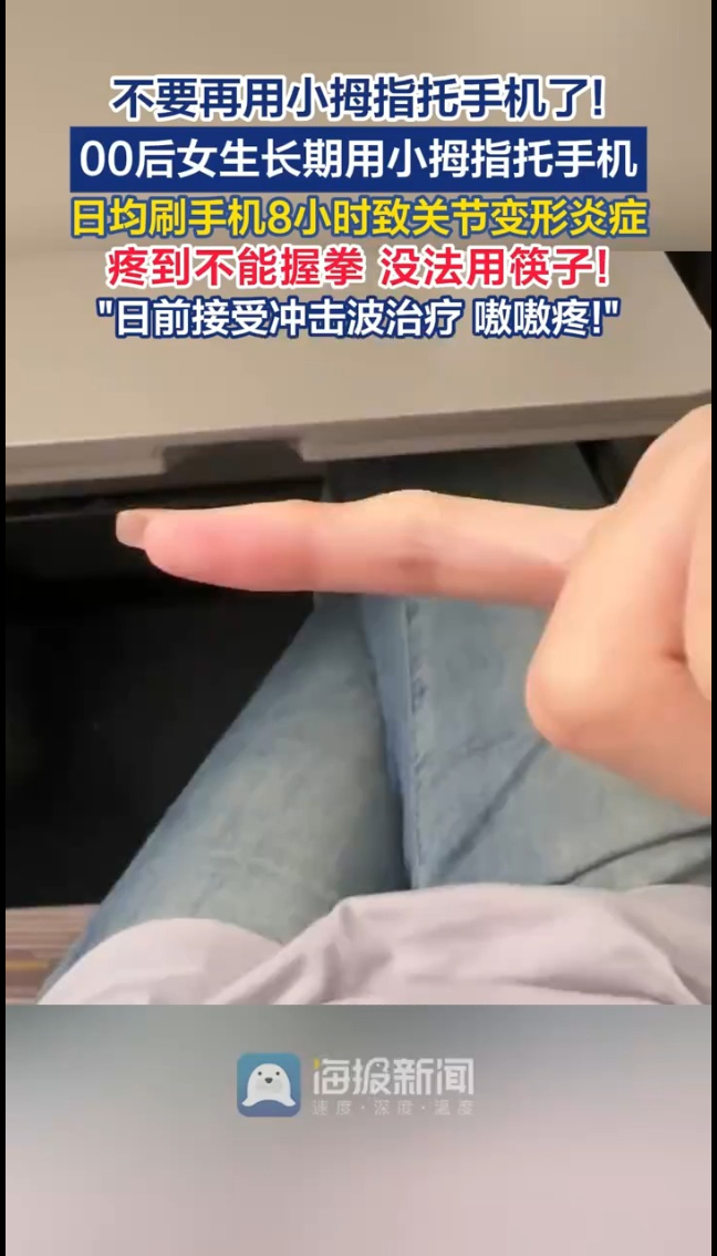 主播说丨00后女生长期用小拇指托手机,日均刷手机8小时致关节变形炎症