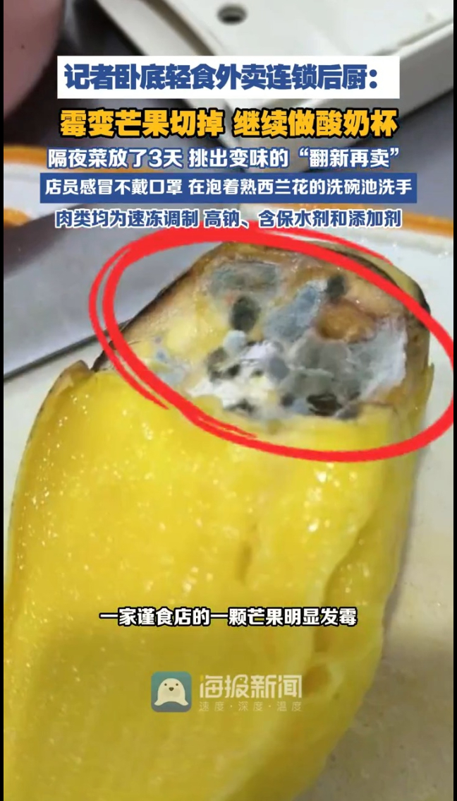 主播说|记者卧底轻食外卖连锁后厨: 霉变水果切掉后继续做酸奶杯