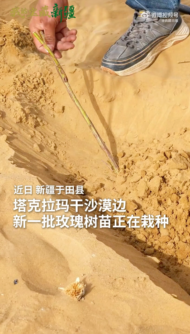 沙漠“绿围脖”越织越厚 塔克拉玛干今年的玫瑰种下了人民日报 昨天06:46近日,新疆于田县,塔克拉玛干沙漠边,新一批玫瑰树苗正在栽种。两年前,这里种下第一株玫瑰,如今已有玫瑰5000亩,防护林1800亩。从“锁边”迈入“扩边”,沙漠“绿围脖”越织越厚。