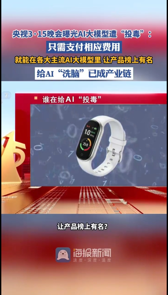 只需支付相应的费用,就能在各大主流AI大模型里,让产品榜上有名?央视3·15晚会曝光AI大模型被恶意“投毒”黑色产业链!