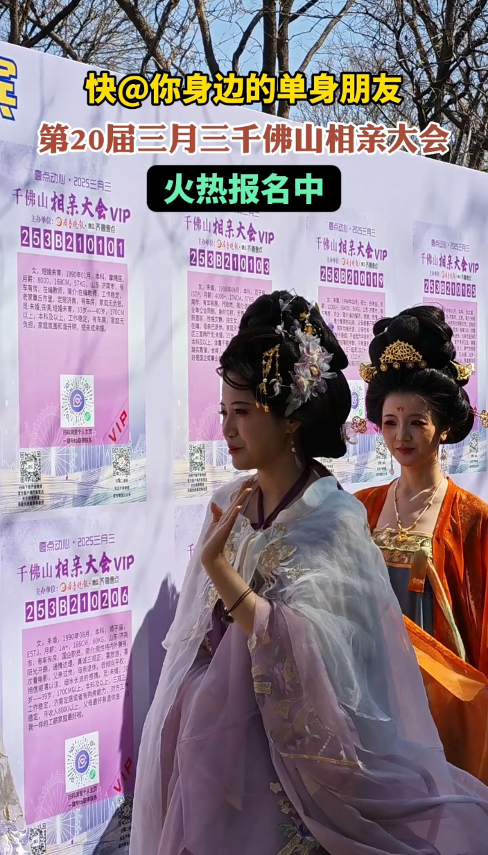 果然视频|快@你的单身朋友!千佛山相亲大会报名火热进行中 10:09 大众报业·齐鲁壹点 微信扫码扫码下载客户端第20届三月三千佛山相亲大会报名进行中,报名通道已开启,报名时间:3月9日-4月8日,报名方式:壹点动心”小程序开启线上报名,举办时间:农历三月三期间。举办地点:济南千佛山景区东门内广场,这个春天快来寻找你的心上人吧!