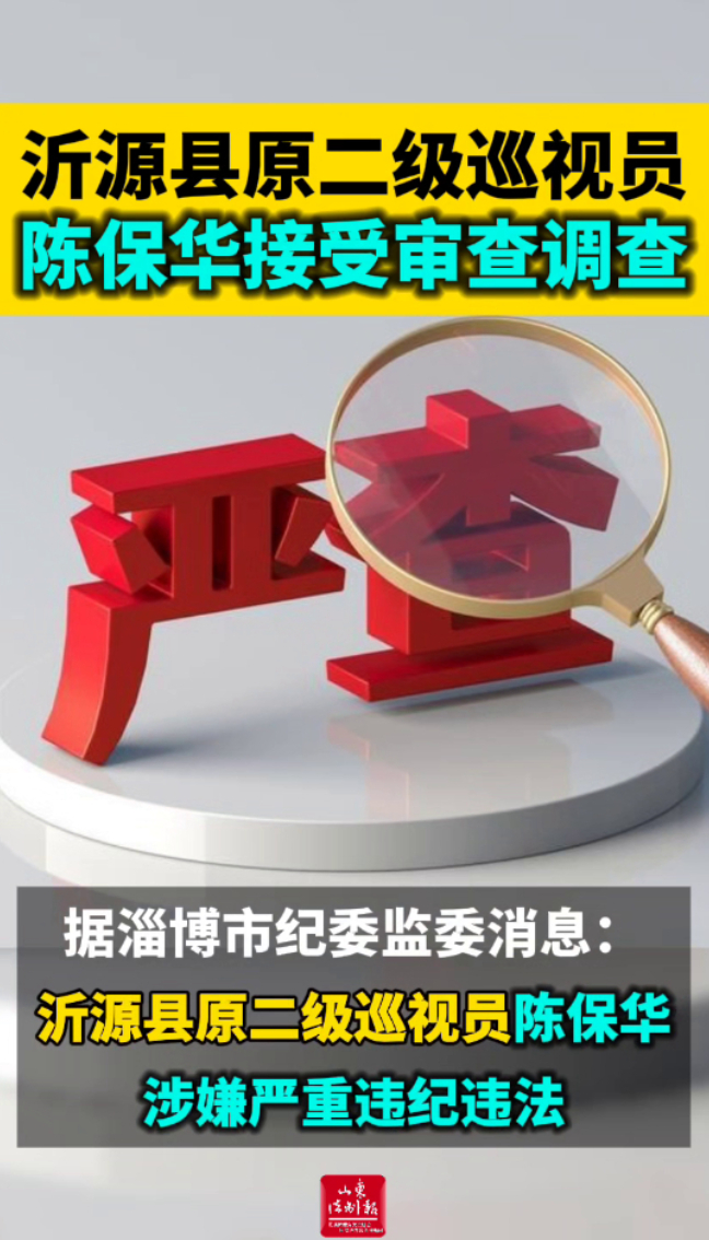 沂源县原二级巡视员陈保华接受审查调查山东法制报 | 16:12 大众新闻·山东法制报 微信扫码扫码下载客户端据淄博市纪委监委消息:沂源县原二级巡视员陈保华涉嫌严重违纪违法,目前正接受淄博市纪委监委纪律审查和监察调查。