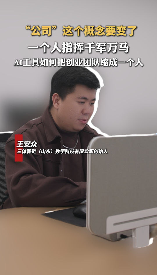 当前,人工智能技术加速迭代,将创业门槛从“组织级”降至“个人级”,一人借助AI工具,即可撬动团队级产能。在此背景下,“单人成军”的科创创业新范式悄然兴起,OPC成为契合时代需求的热门创业模式。三体智链(山东)数字科技有限公司创始人王安众对此深有体会:“我们一个人可能就会指挥千军万马。每个人可能都会使用很多AI的工具,有做图的、有做表格的、做PPT的、有生成图文视频的等等。”(大众新闻记者 荆新年 贾馨儒 策划 马玉峰 王磊)