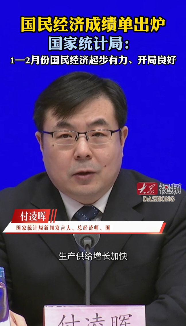 国民经济成绩单出炉!国家统计局:1—2月份国民经济起步有力、开局良好大众新闻 15:31原创3月16日上午10时,国务院新闻办公室举行新闻发布会,请国家统计局新闻发言人、总经济师、国民经济综合统计司司长付凌晖介绍2026年1-2月份国民经济运行情况,并答记者问。付凌晖在会上介绍,生产供给增长加快,市场需求稳中有升,就业物价总体稳定,新质生产力成长壮大,经济运行起步有力,实现良好开局。(大众新闻记者 董婉婉 吕乐)