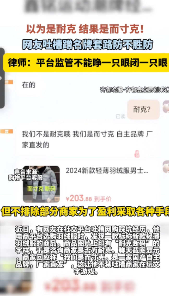 果然视频|以为是耐克,结果是而寸克!网友吐槽“蹭名牌”套路防不胜防