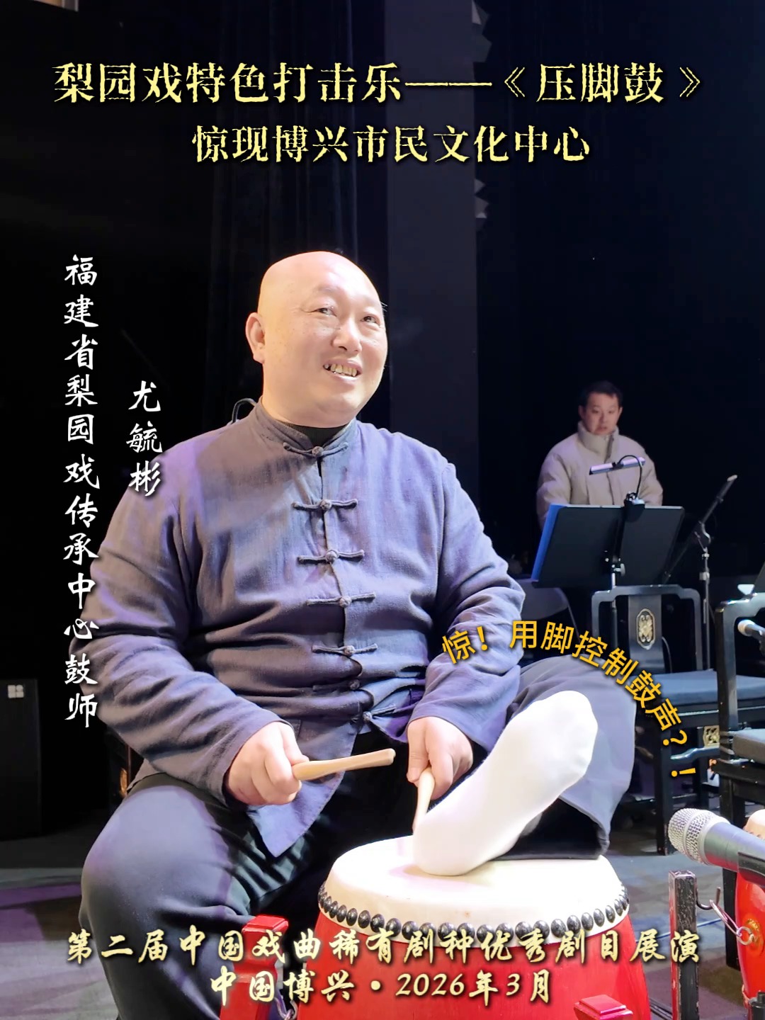 梨园戏亮打击乐“绝活”大众新闻客户端 21:42原创3月15日晚上,第二届中国戏曲稀有剧种优秀剧目展演首场“大戏”——由福建省梨园戏传承中心带来的《陈三五娘》精彩上演。其中,梨园戏特色压脚鼓让人眼前一亮。(大众新闻记者 韩凯 通讯员 窦宏瑞 报道)