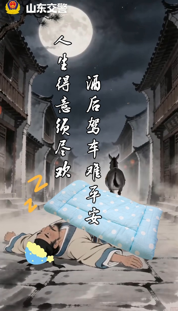 人生得意须尽欢,酒后驾车难平安!山东交警提醒您:喝酒不开车,开车不喝酒,别再心存侥幸,别让“醉”酿成“罪”!