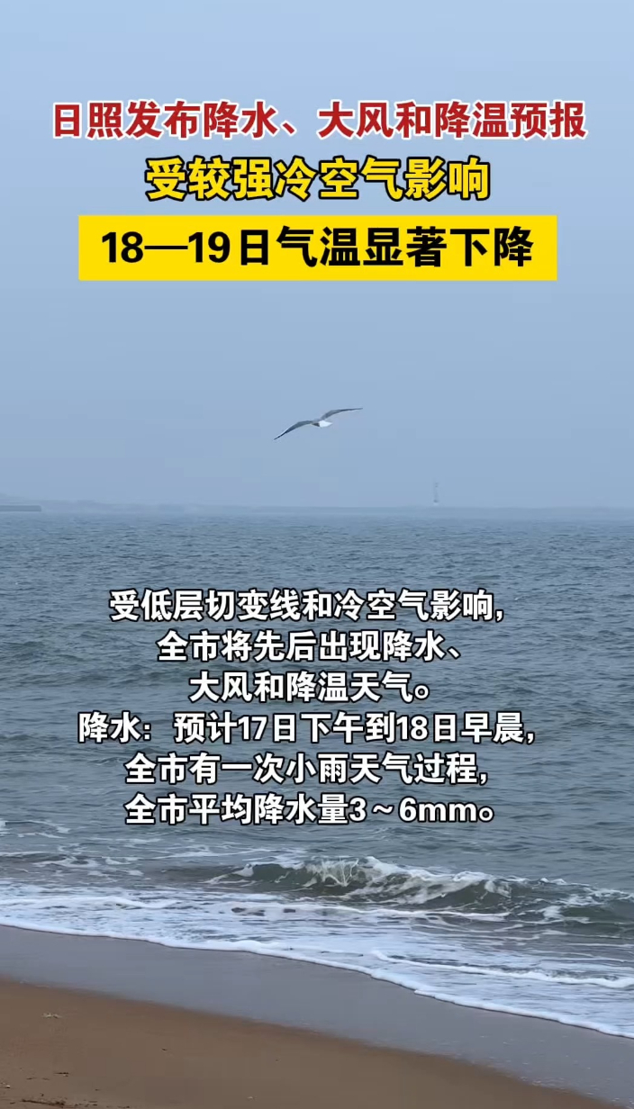 果然视频丨冷空气马上到!日照发布降水、大风和降温预报