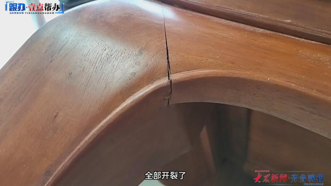 跟办|六万红木家具用一年就开裂,消费者维权陷僵局大众新闻 11:02现场近日,滨州壹粉王先生向齐鲁晚报·齐鲁壹点《壹点帮办》栏目(报料电话:0531-85193700;报料平台:“壹点帮办”微信小程序)反映称,其花6万元购买的红木家具刚用一年多就出现开裂,怀疑产品质量有问题,商家存在欺诈行为,想要退货退钱,多次和经销商洽谈无果。对此,涉事红木家具经销商表示,所卖家具并非假货,家具开裂属于正常范围,按公司规定可维修。(齐鲁晚报·齐鲁壹点 赵旭 边浩玥 郝东智)