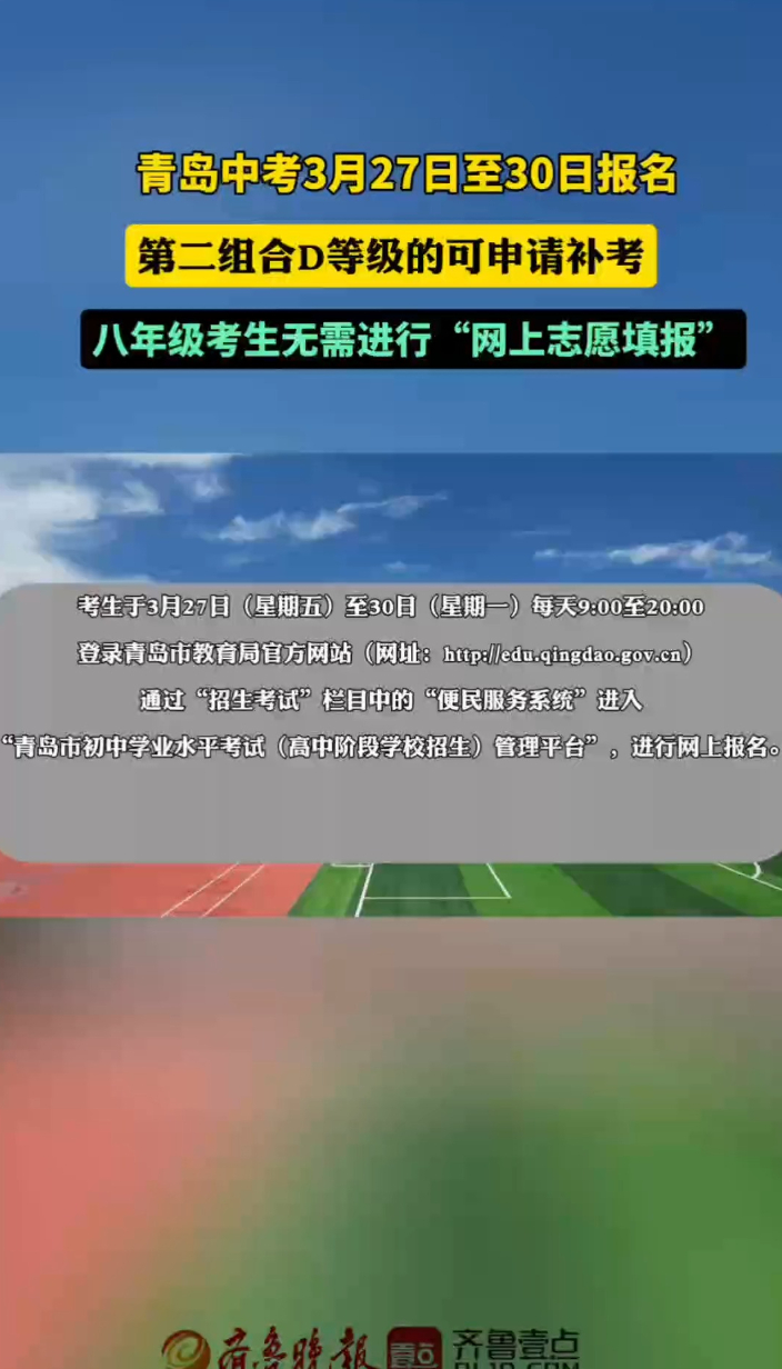 果然视频丨市教育局发布通知,青岛中考3月27日至30日报名齐鲁晚报·齐鲁壹点客户端 10:03原创日前,青岛市教育局发布《关于做好2026年全市初中学业水平考试网上报名工作的通知》,明确了今年中考报名条件、报名办法等要求。 (齐鲁晚报·齐鲁壹点 李珍梅)