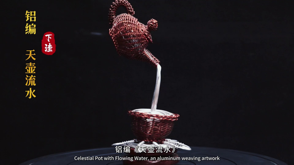 滨州沾化:铝编《天壶流水》 09:27 大众新闻·经济导报 微信扫码扫码下载客户端铝编《天壶流水》是滨州市沾化区传统铝编工艺的匠心之作,以红棕、白双色烤漆铝丝为原料,经缠编、盘丝、塑形等技法精巧构筑。作品还原天壶悬空、流水倾泻的诗意场景,壶身肌理细密,水流灵动逼真,既彰显铝编工艺的金属质感与手工巧思,又传递出清雅顺遂、财源绵长、万事和顺的美好祈愿。(王志浩)