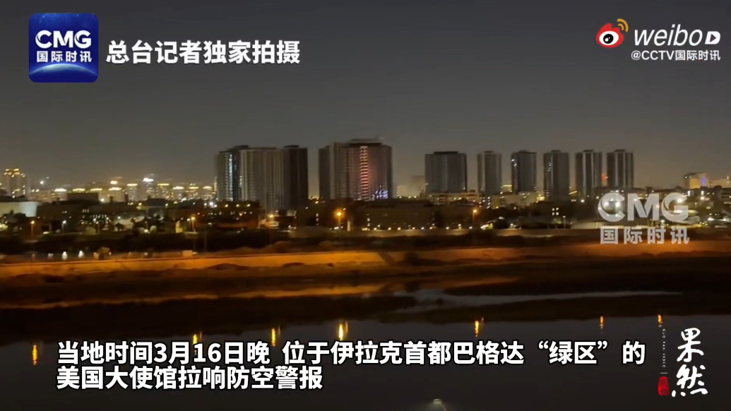 果然视频·看天下|美国驻伊拉克使馆遭无人机袭击后起火 15:50 原创齐鲁晚报·齐鲁壹点客户端 微信扫码扫码下载客户端3月17日凌晨,位于伊拉克首都巴格达“绿区”内的美国驻伊拉克使馆遭无人机袭击,馆内设施遭袭后起火。自当地时间 3月16日晚至17日凌晨,据总台记者观察,美国驻伊拉克使馆已遭至少5轮无人机和火箭弹袭击,使馆防空警报频繁拉响并启动C-RAM防空系统进行拦截。