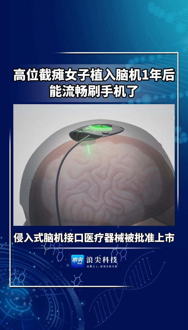浪尖科技 | 高位截瘫女子植入脑机1年后能流畅刷手机了!国家药监局正式批准侵入式脑机接口医疗器械上市