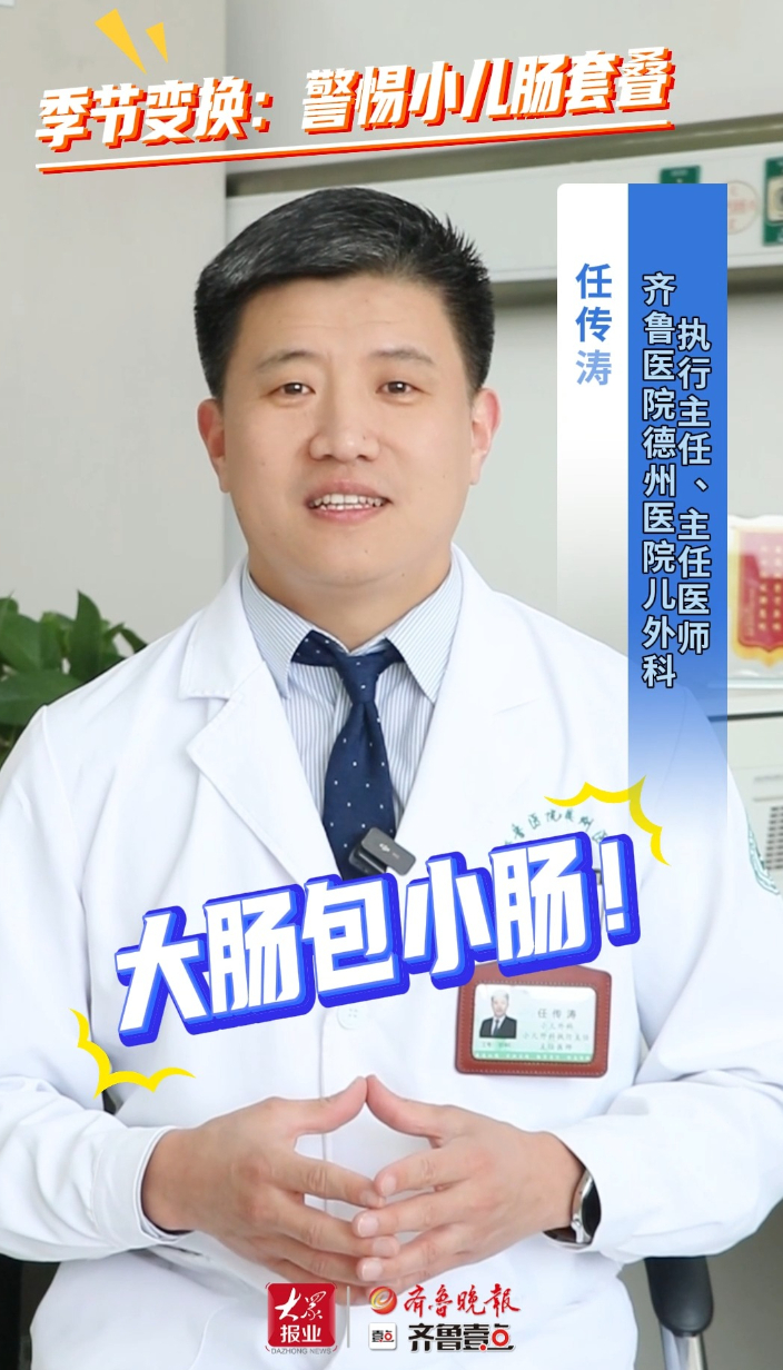 果然视频∣大肠包小肠?儿外科专家提醒:季节变化警惕小儿肠套叠齐鲁晚报·齐鲁壹点客户端 16:46原创季节变换之际,半岁至两岁宝宝易高发一种急症——小儿肠套叠。齐鲁医院德州医院儿外科执行主任、主任医师任传涛表示,该病症具有典型症状:孩子突发无故大哭、蹬腿且难以安抚,症状会反复出现,还可能伴随吐奶、吐黄水,以及排出果酱样血便,也可能仅出现上述单一症状。家长一旦发现宝宝出现相关症状,需及时带孩子到正规医院的儿外科评估治疗,切勿拖延。(齐鲁晚报·齐鲁壹点 马雪平)