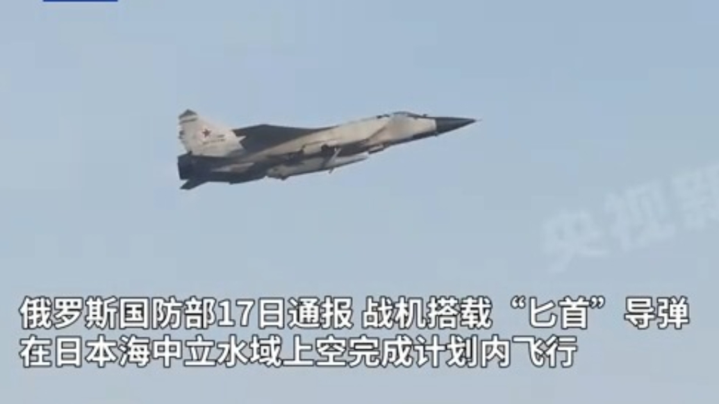 俄国防部:战机搭载“匕首”导弹飞越日本海,飞行遵守国际规则央视新闻 21:57俄罗斯国防部17日通报,携带俄制高超音速“匕首”导弹的米格-31战机机组在日本海中立水域上空完成计划内飞行,其间进行了空中加油训练。俄方强调,战机的飞行严格遵守国际空域使用规则。 (央视新闻)
