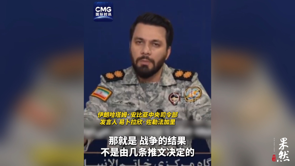 果然视频·看天下|伊朗:美国应该把战争命名为“史诗恐惧”齐鲁壹点 | 昨天23:24 原创齐鲁晚报·齐鲁壹点客户端 微信扫码扫码下载客户端当地时间3月16日,伊朗哈塔姆·安比亚中央司令部发言人用英语“隔空喊话”美国总统特朗普说,“战争的结果不是由几条推文决定的,而是在战场上决定的。”他还说,美国最好将这场战争改名为“史诗恐惧”,而非“史诗怒火”。