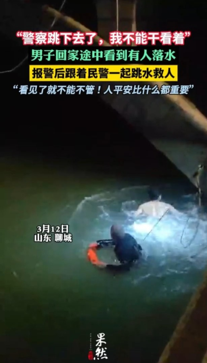 “咱不能干看着!”报警后,聊城这位市民跟着警察跳河救人大众报业·齐鲁壹点 06:58“警察跳下去了,咱也不能干看着!”3月12日晚,山东聊城,市民曲震在回家途中,路过城区铁塔附近时发现有人落水,第一时间报警求助并迅速赶往落水点。市公安局东昌府分局柳园派出所民辅警火速出警,两三分钟抵达现场,确定情况后,民警陈洪祥立即跳入冰冷的水中,曲震也脱下上衣跟着跳了下去。两人合力,很快在桥洞下找到了落水者并托举其上岸。由于救援及时,目前落水者已脱离生命危险。(陶春燕 通讯员 王鑫)