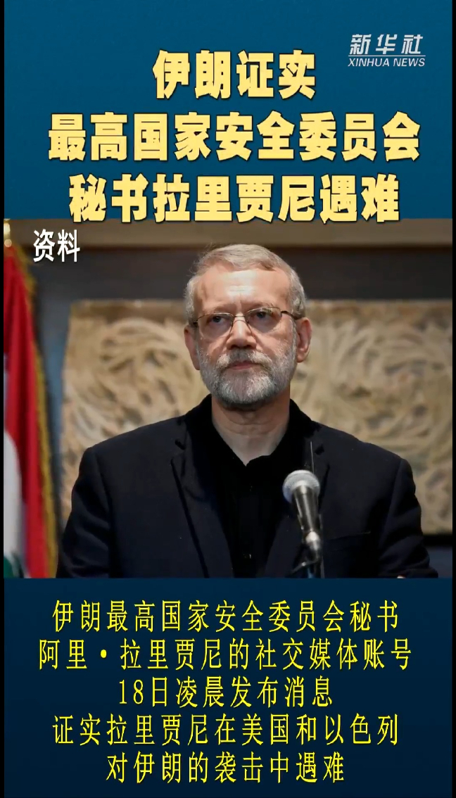 伊朗证实最高国家安全委员会秘书拉里贾尼遇难新华社 08:25伊朗最高国家安全委员会秘书阿里·拉里贾尼的社交媒体账号18日凌晨发布消息,证实拉里贾尼在美国和以色列对伊朗的袭击中遇难。伊朗法尔斯通讯社17日晚以知情人士为消息源报道,伊朗为所有关键政府官员和军事指挥官预先指定了3至7名不等的替代人选,以确保遭遇突发情况时国家核心职能的连续性。伊朗民兵“动员穷人组织”指挥官吴拉姆-礼萨·苏莱曼尼也在空袭中遇难。新华社音视频部制作