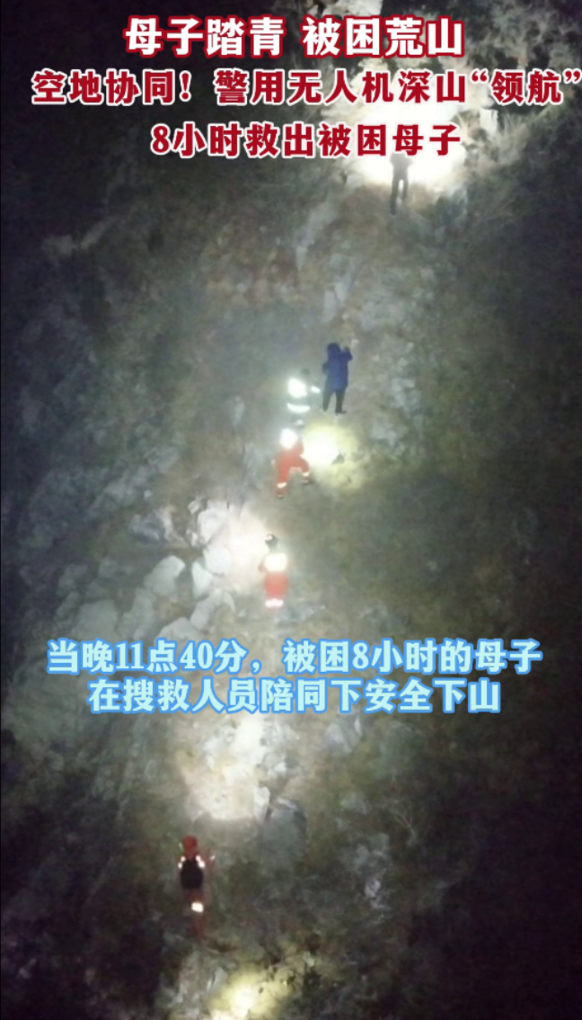 母子踏青 被困荒山 警用无人机深山“领航”8小时救出被困母子 16:20 大众新闻·山东法制报 微信扫码扫码下载客户端母子踏青 被困荒山 空地协同警用无人机深山“领航”8小时救出被困母子(通讯员 张琪)