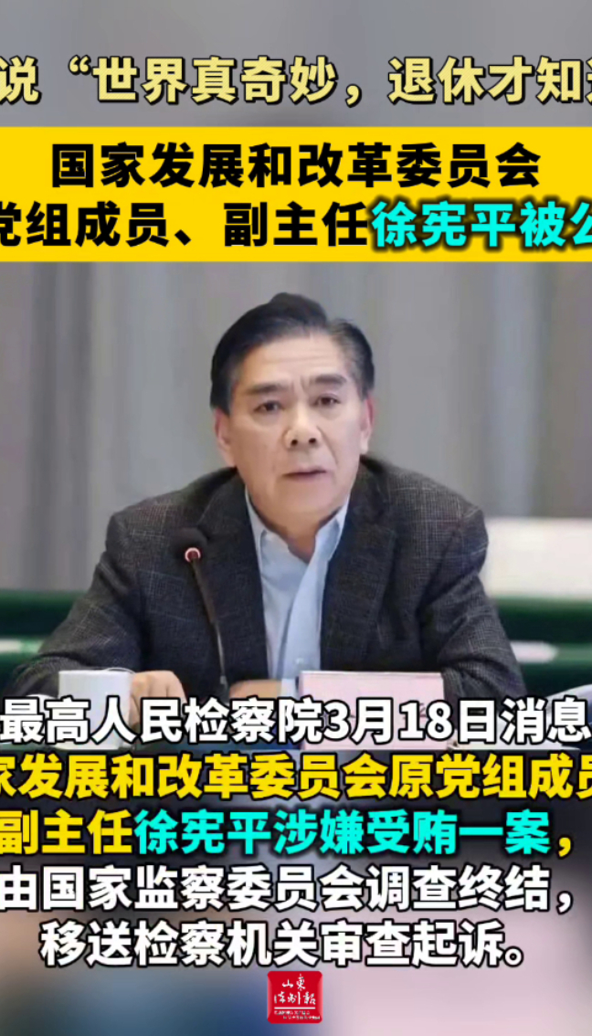 曾说“世界真奇妙,退休才知道”,国家发展和改革委员会原党组成员、副主任徐宪平被公诉
