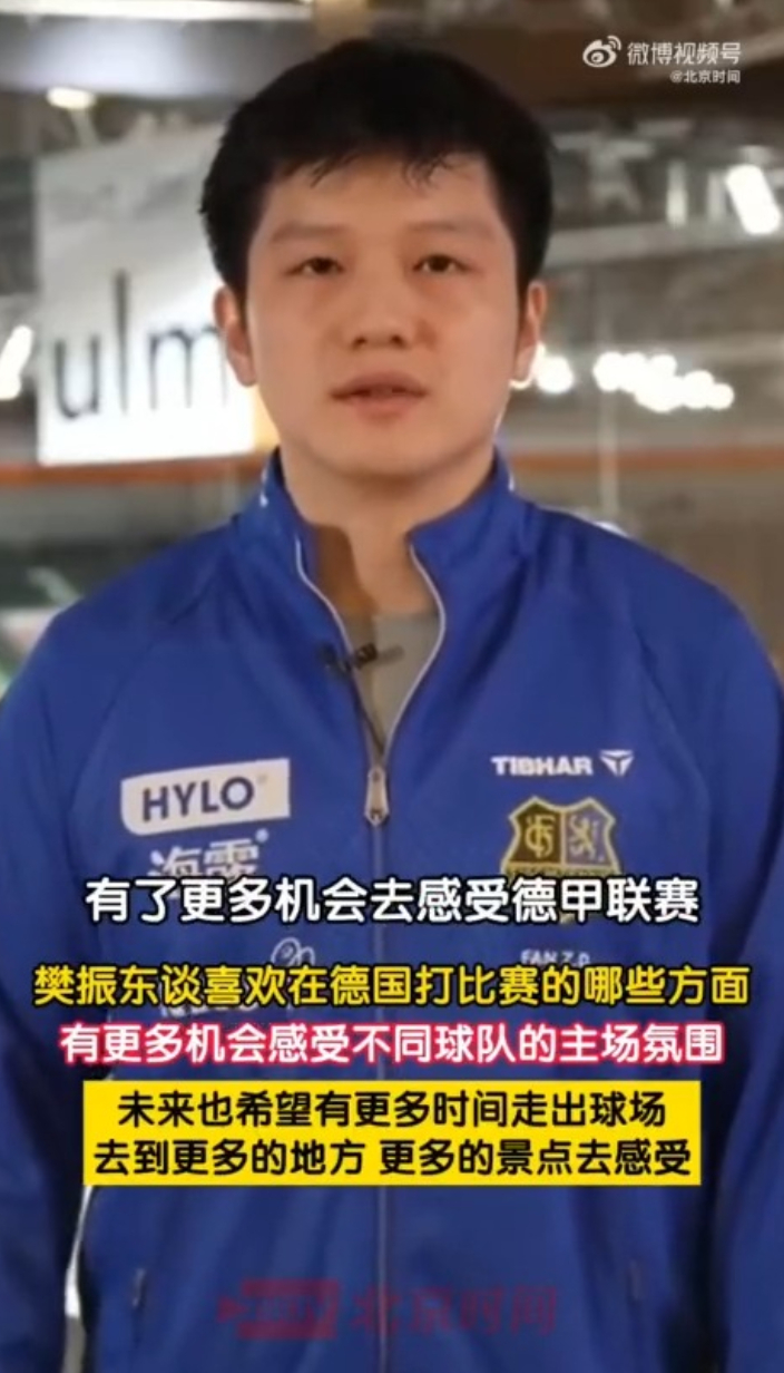 樊振东回应“喜欢在德国打比赛”:有更多机会感受不同主场氛围齐鲁壹点 | 16:00 @北京时间 微信扫码扫码下载客户端近日,德甲联赛官方账号发布专访樊振东视频,被问及为何喜欢在德国打比赛时,樊振东表示,最主要的是有了更多机会去感受德甲联赛不同主场的氛围,未来也希望有更多时间走出球场,去到更多的地方,更多的景点去感受和体验。 (@北京时间)