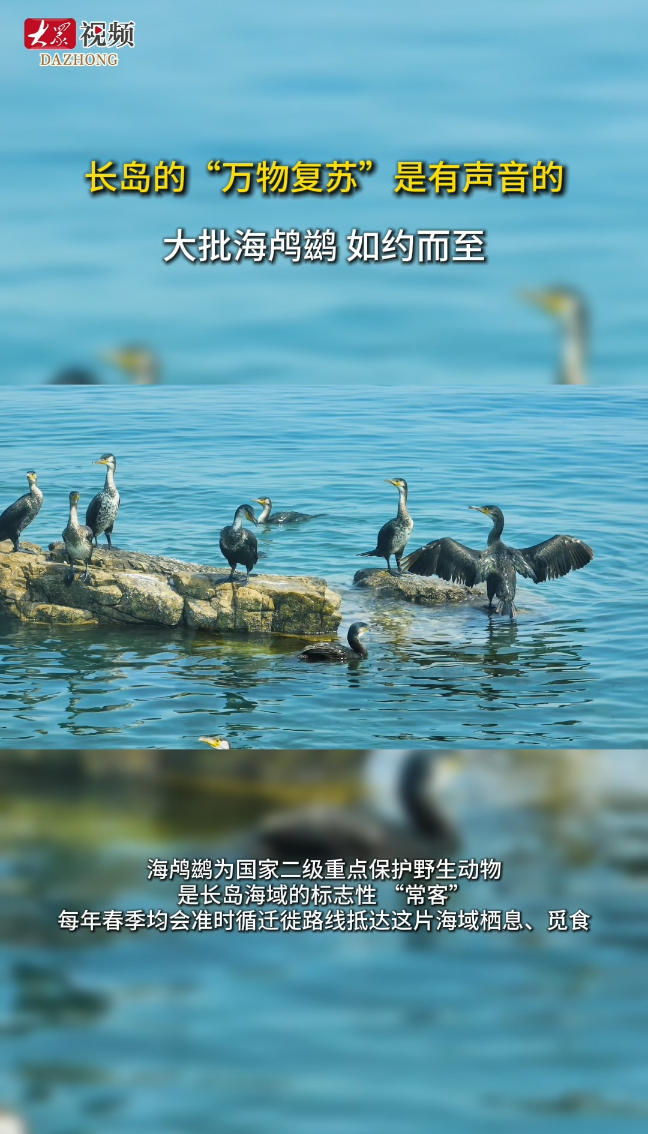 三月中旬,春意渐浓、渤海湾水温回升,山东长岛海域迎来大批北归的海鸬鹚,正式拉开当地春季候鸟迁徙的生态序幕。