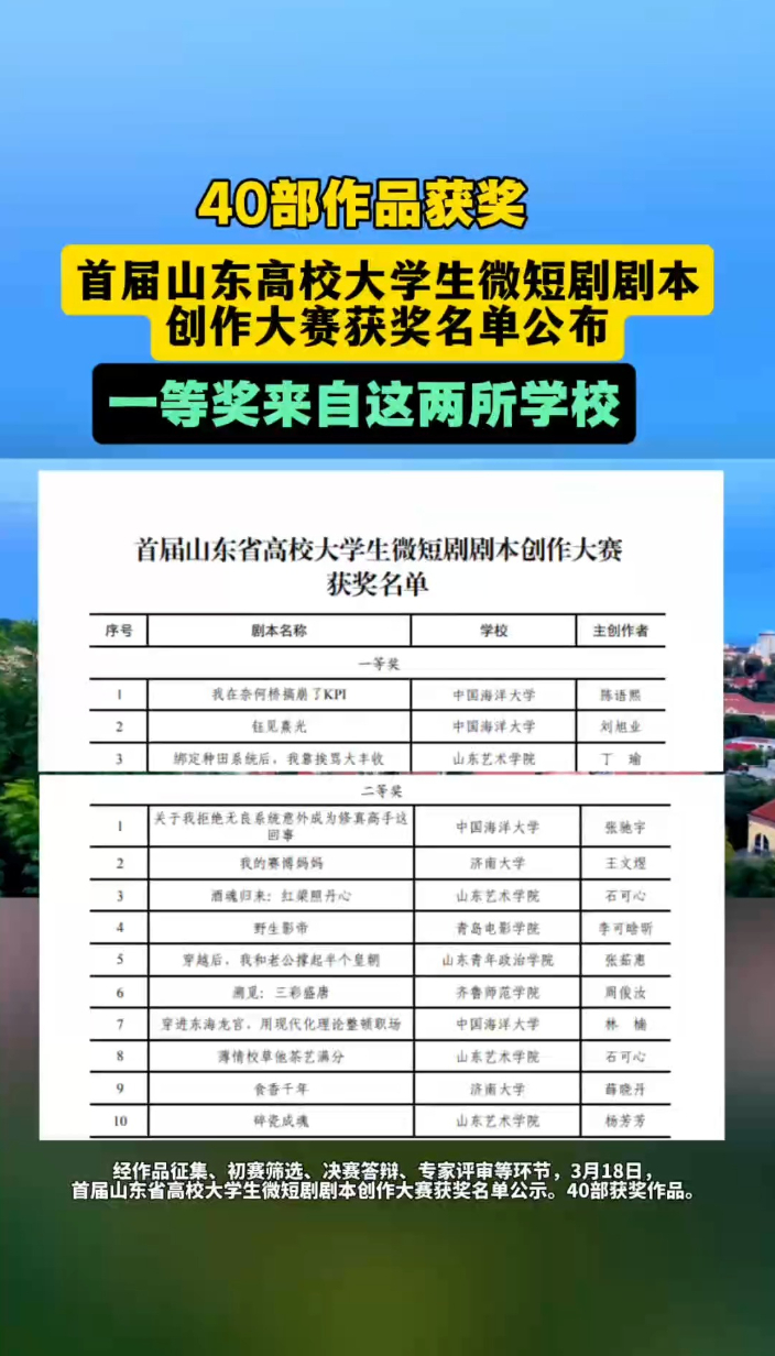 果然视频丨首届山东省高校大学生微短剧创作获奖名单公示齐鲁晚报·齐鲁壹点客户端 16:28原创经作品征集、初赛筛选、决赛答辩、专家评审等环节,3月18日,首届山东省高校大学生微短剧剧本创作大赛获奖名单公示。40部作品获奖。 (齐鲁晚报·齐鲁壹点 李珍梅)