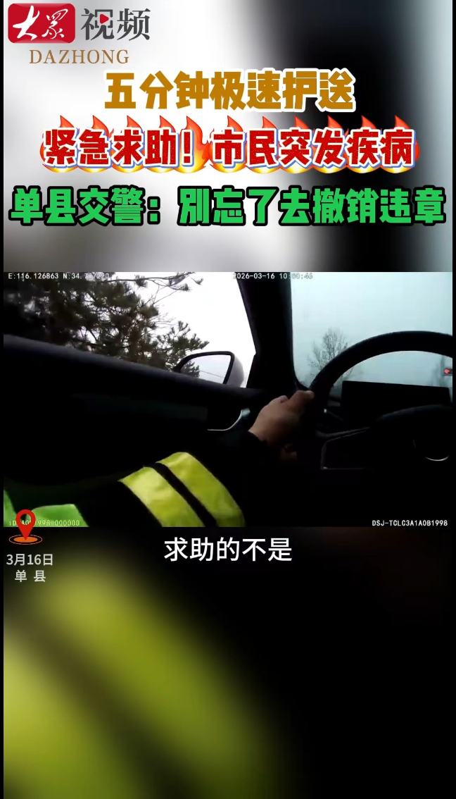 五分钟生死时速!菏泽交警护送急症市民就医!细节很圈粉:交通违法可撤销大众新闻 | 20:44 原创大众新闻 微信扫码扫码下载客户端近日,菏泽单县街头上演暖心救援一幕。一名市民突发疾病,情况危急,家属驾车送医途中紧急向交警求助。单县交警火速响应,开辟生命通道,一路喊话提醒社会车辆避让,仅用五分钟便将患者安全护送至医院,为救治赢得宝贵时间。针对途中可能产生的交通违法记录,交警提醒病人家属:事后可凭相关证明申请撤销。(大众新闻记者 赵念东)