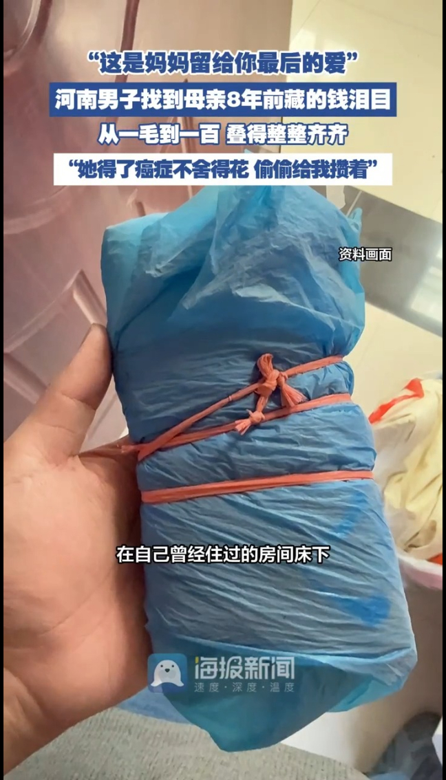 网友泪目:妈妈把爱藏进枕头底下、床板缝里、你住过的每一个角落。她走了8年,但你一打开那包钱,就像她还在轻轻说:妈这辈子没给你攒下什么,但能给的,都给你了。