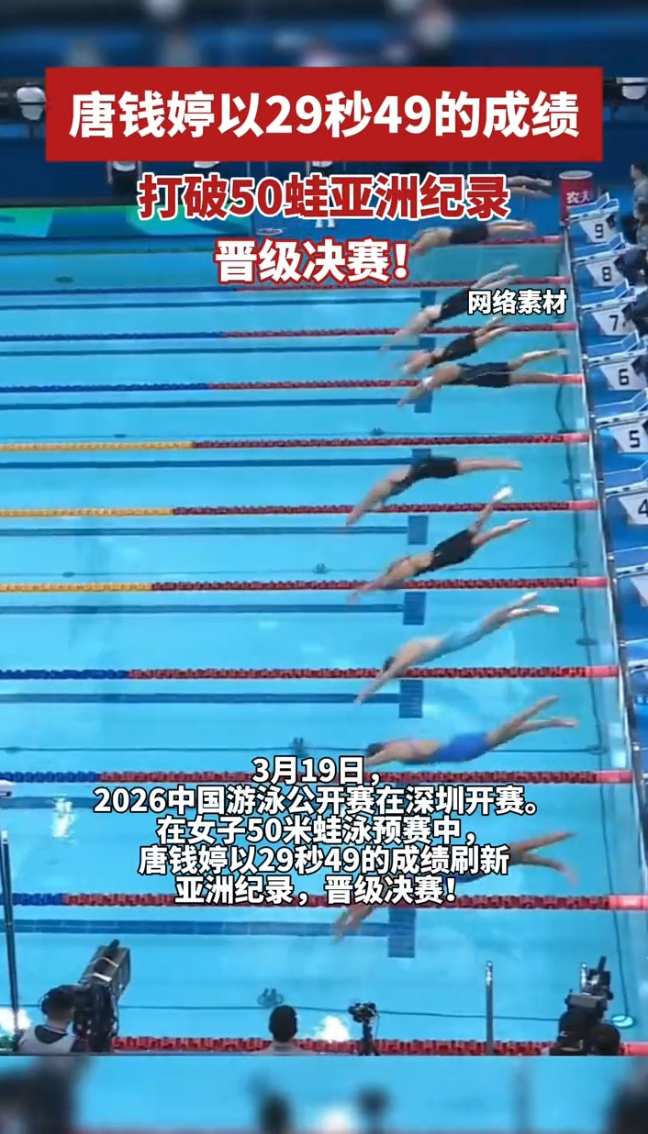 祝贺!唐钱婷打破50蛙亚洲纪录