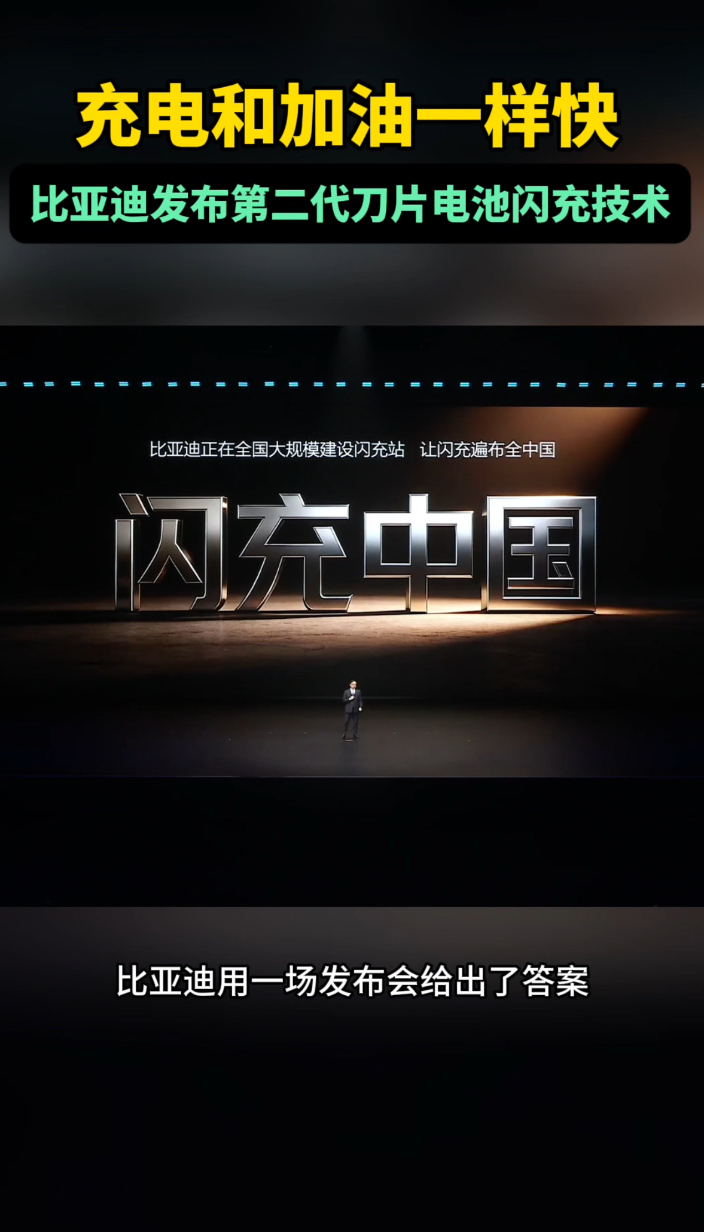 充电和加油一样快!比亚迪5分钟闪充,给电动化上半场画上句号齐鲁壹点 | 15:35 大众报业·齐鲁壹点 微信扫码扫码下载客户端3月5日,比亚迪在深圳大运中心体育馆召开“闪充中国 改变世界”发布会。正式发布:第二代刀片电池及闪充技术,创造全球量产最快充电速度新纪录,从10%到70%,只用5分钟就能充好;从10%到97%,只用9分钟就能充饱;零下30度,从20%到97%,只比常温多3分钟。一举攻克了电动化上半场“充电慢”和“低温充电难”的世界性难题,电动化上半场至此完美收官。