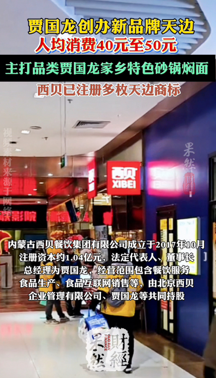 果然财经|贾国龙创办新品牌天边,主打品类其家乡砂锅焖面 17:28 原创齐鲁晚报·齐鲁壹点客户端 微信扫码扫码下载客户端据报道,西贝创始人、董事长贾国龙的最新创业项目“天边砂锅焖面”已在北京798艺术区悄然落地。这家新店2月13日开业,人均消费40元至50元,主打品类是贾国龙家乡内蒙古巴盟特色的砂锅焖面。贾国龙表示,西贝要关一部分店,他希望有个新品牌能够承接一部分门店和员工。