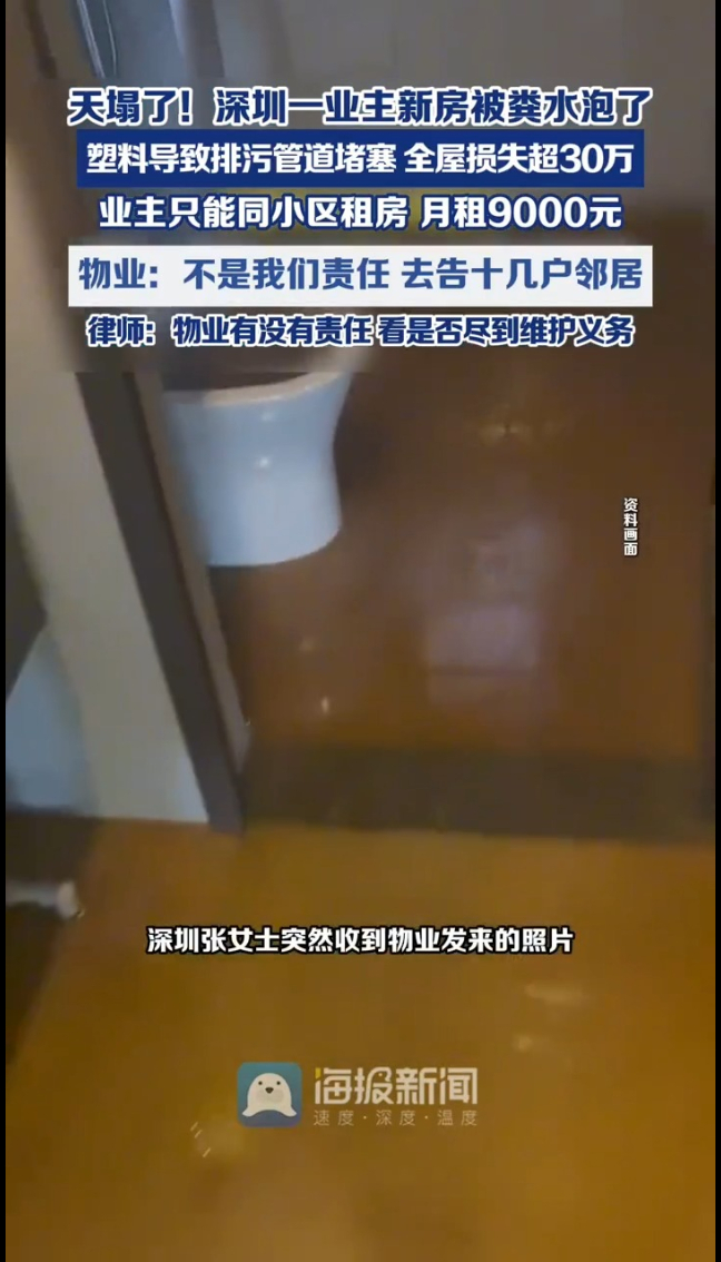 主播说 | 天塌了!深圳一业主新房被粪水泡了,塑料导致排污管道堵塞,全屋损失超30万