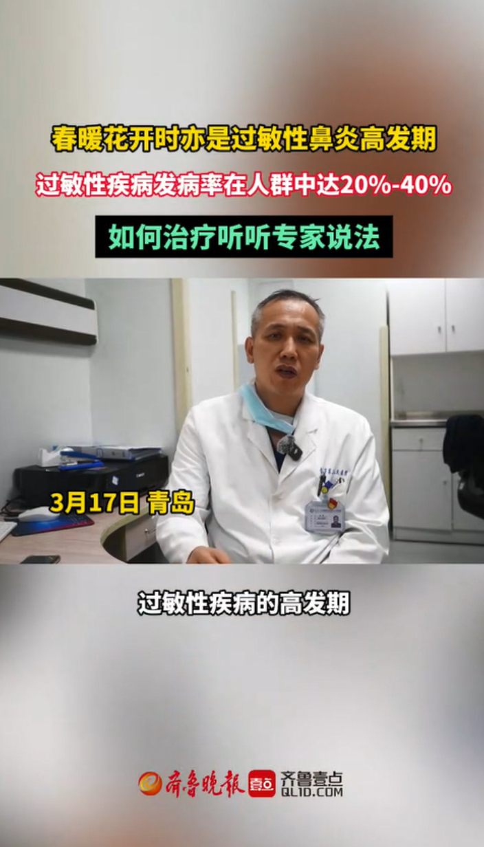 果然视频丨春暖花开时亦是过敏性鼻炎高发期,听听专家说法齐鲁晚报·齐鲁壹点客户端 20:06原创春暖花开时亦是过敏性鼻炎高发期。3月16日,记者在青岛市第三人民医院采访到了耳鼻咽喉头颈外科副主任医师杨嵘。他表示,目前,过敏性疾病发病率在人群中达20%-40%。如果得了过敏性鼻炎可以通过过敏原检查、单抗药物治疗等来进行治疗。 (齐鲁晚报·齐鲁壹点 杨雪)