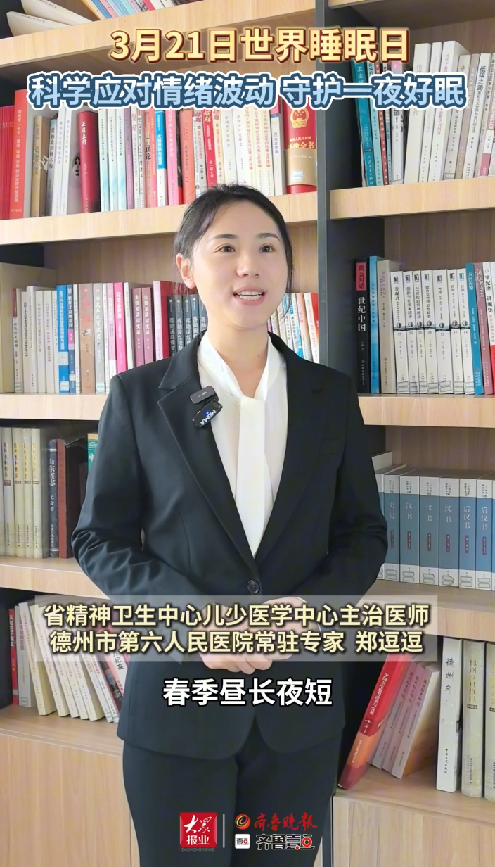 鲁医健康说∣德州六院专家教你科学应对情绪波动,守护一夜好眠齐鲁晚报·齐鲁壹点客户端 19:00原创3月19日,德州市卫生健康委举行“鲁医健康说”系列健康知识发布会。3月21日是第26个世界睡眠日,山东省精神卫生中心儿少医学中心主治医师,德州市第六人民医院常驻专家郑逗逗教你如何科学应对情绪波动、睡眠紊乱,守护一夜好眠。(齐鲁晚报·齐鲁壹点 马雪平)