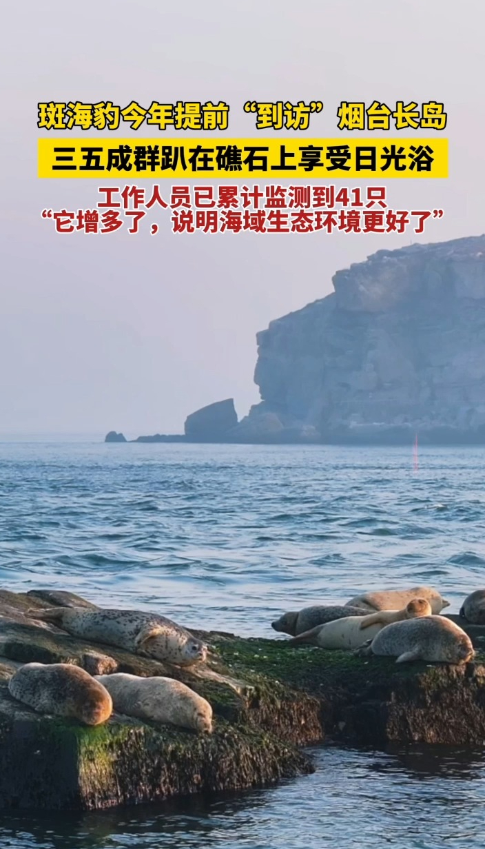 果然视频|斑海豹今年提前“到访”烟台长岛,已累计监测到41只齐鲁晚报·齐鲁壹点客户端 昨天21:20原创斑海豹今年提前“到访”烟台长岛,三五成群趴在礁石上享受日光浴。近日,长岛国家海洋公园管理中心监测显示,今年斑海豹洄游启动早、个体活跃度高,已累计监测到个体41只,常年留守数量从3—4只稳步增加到7只,种群保护成效明显。工作人员介绍,“它增多了,说明海域生态环境更好了。”(齐鲁晚报·齐鲁壹点 钟建军 后期 武春虎)