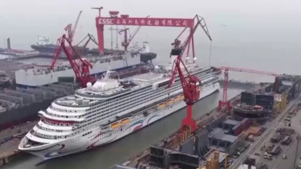 今天(20日),第二艘国产大型邮轮“爱达·花城号”将正式出坞,全面转入码头建造调试阶段。(央视新闻)