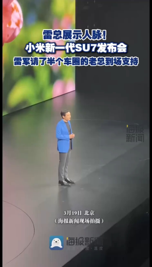 3月19日晚,小米新一代SU7的发布会在北京举行。当晚的发布会上,几乎汇聚了国内新能源汽车产业的全部目光。但当小米集团董事长雷军走上舞台中央时,镜头扫过的台下前排席位,却贡献了比新车售价更值得玩味的画面:比亚迪集团董事长兼总裁王传福、理想汽车CEO李想、小鹏汽车CEO何小鹏、阿维塔董事长王辉并排而坐,北汽集团董事长张建勇、宇树科技创始人王兴兴亦在席间 。